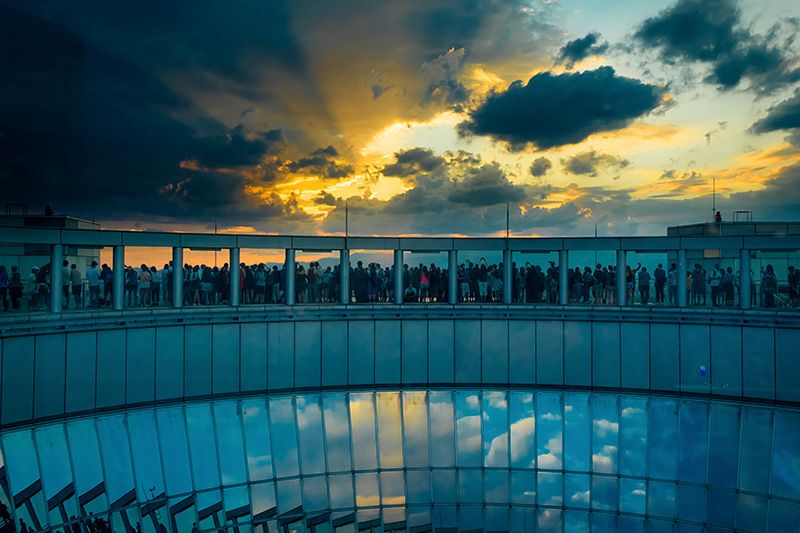 يكون المرصد مفتوحا حتى الساعة العاشرة ويصل أغلب الزائرين بعد حلول الظلام. ويقوم البعض أيضا بالمجيء بالنهار، كأفضل الأوقات للتمتع بعمارة المبنى نفسه وانعكاسات السماء والسحب فوق سطحه الزجاجي.