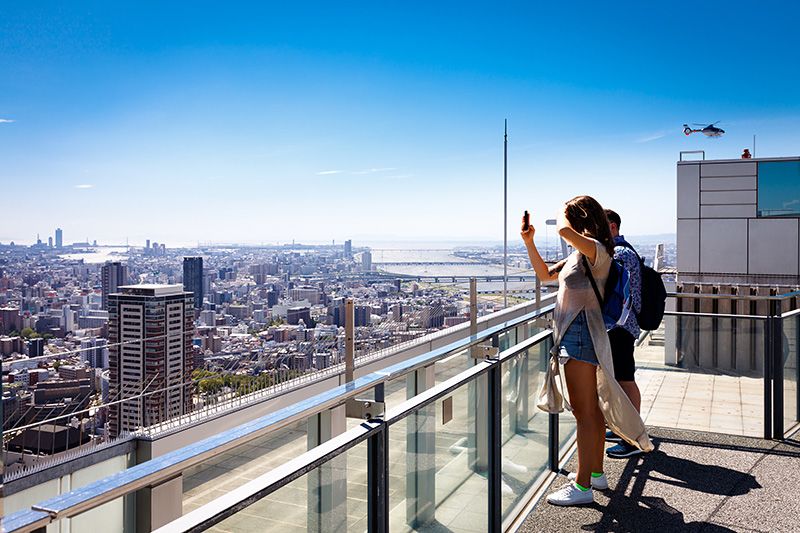 يتيح المرصد مشاهدة المناظر الخلابة بشكل بانورامي، ومن شرفة مفتوحة تمكّن الزائرين من الشعور بسرعة الرياح بخلاف العادة في مثل تلك الطوابق المرتفعة. يجتمع الناس بالجانب الغربي من المبنى كل مساء لمشاهدة الشمس الغاربة فوق جبل روكّو وقناة كيي، أو عند الجانب الجنوبي بالليل للاستمتاع بأضواء النيون الساطعة الخاصة بناطحات السحاب في أوساكا. وتظهر تلك المناظر في قوائم أفضل غروب للشمس ومناظر الليل باليابان.