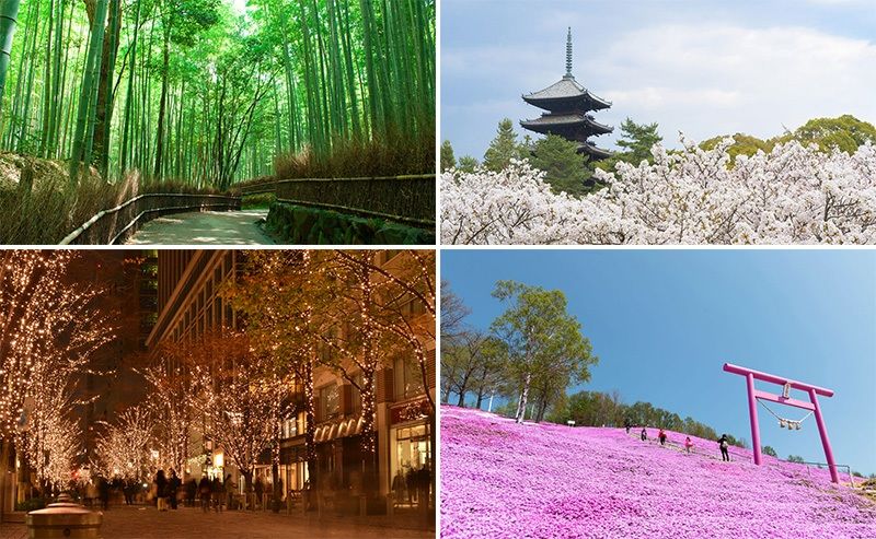 التغيرات الموسمية في اليابان متميزة جدا. فكل موسم له طبيعته الخاصة والشيء الذي ميزه عن باقي المواسم، فمثلا في الربيع تجد أزهار الساكورا الشهيره، في الصيف موسم الألعاب النارية المميزة التي يمكن مشاهدتها في كافة أنحاء اليابان، وفي الخريف تكتسي البلاد باللون الأصفر والأحمر مع تساقط أوراق الأشجار ويصبح الطقس منعشا، أما في الشتاء ومع اقتراب موعد أعياد الميلاد تكتسي الساحات العامة والشوارع في اليابان بمجسمات أشجار عيد الميلاد والزينة والأضواء المبهرة. وتخطف طوكيو الأنظار دائماً بفضل أضوائها الساحرة وأجوائها الرومانسية. كما يجلب الشتاء سماء صافية وثلجًا مثاليًا لممارسة الرياضات الشتوية في المناطق الشمالية والجبلية.
