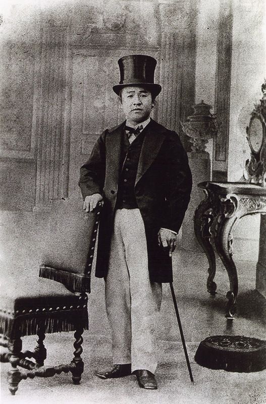 قام شيبوساوا إيئيتشي بقص تسريحة شعره اليابانية، وتغيير ملابسه إلى ملابس غربية أثناء إقامته في أوروبا كعضو في وفد معرض باريس الدولي (المتحف التذكاري لشيبوساوا)