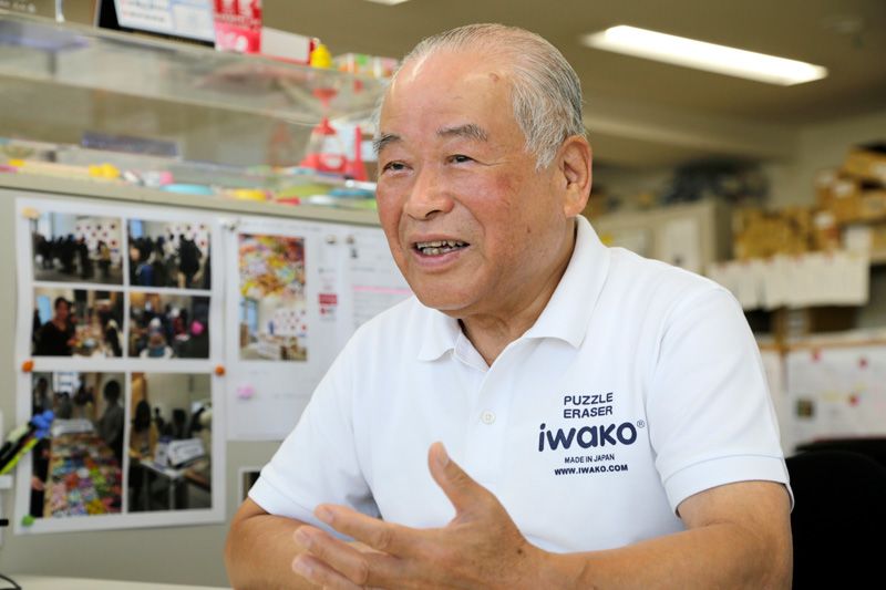 ”اقتصارنا على الجيران هو لتجنب تعرض أجزاء الممحاة للاحتكاك أثناء نقلها لمسافات بعيدة. لذلك، تُعتبر الممحاة المسلية ممحاة ’صنعت في الجوار‘. إذا كانت رخيصة إلى هذا الحد، فلن تظهر أي منافسة. وحتى لو حاولوا تقليدها، فلن يستطيعوا (يقول ذلك وهو يضحك). ولكن بيعها بخمسين ين هو أمر صعب بسبب ارتفاع تكلفة المواد الأولية بنحو 70% مقارنة بسعرها عند بداية الإنتاج. ومع ذلك، أريد الحفاظ على هذا السعر لكي يتمكن الأطفال من شرائها بدون تردد“.
