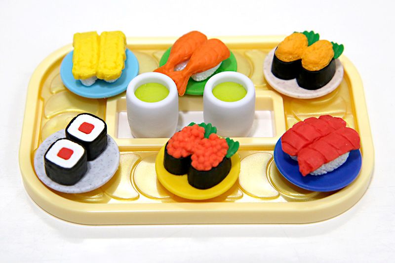 عند سؤاله عن الأنواع ذات الشعبية العالية، أجاب السيد إواساوا: ”أعتقد أن ممحاة السوشي الدوار هي الأكثر شعبية. في البداية، كنا نصنع السوشي العادي فقط، ولكن حفيدي سألني ’لماذا لا يوجد سوشي فوق الصحن؟‘، وعندها أدركت أنه ’زمن السوشي الدوار‘ وقمت بصنع ممحاة السوشي الدوار (يقول ذلك وهو يضحك). وتُباع كثيرًا في المناطق السياحية“.