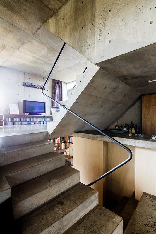 وقد تم تصميم الجزء الداخلي بسلسلة من الطوابق المقسمة، ليخلق تدرجاً طبيعياً من المساحة المشتركة في الأسفل إلى المساحات الخاصة في الأعلى. كما لا يفصل غرف النوم عن بعضها سوى أرفف الكتب فقط، وهو نظام يسعد الوالدين كثيراً، إلا أن أطفالهم وهم من الشباب يجدون صعوبة أكبر في تقبله على ما يبدو.
