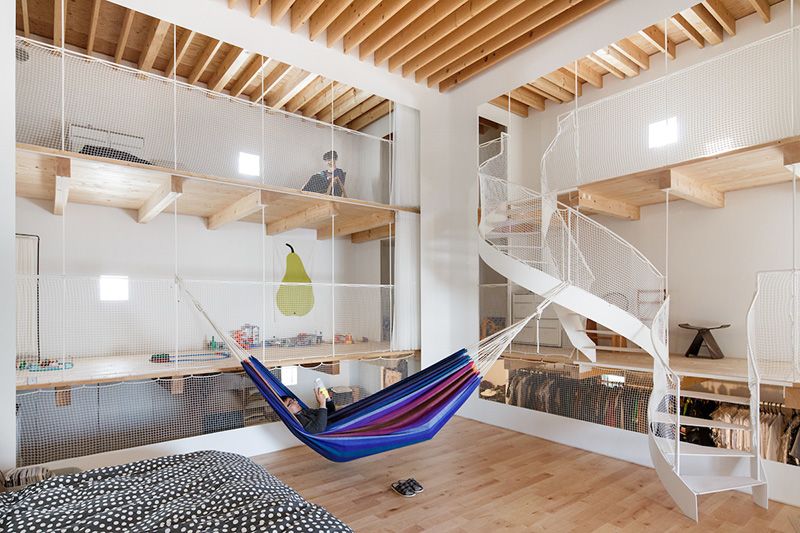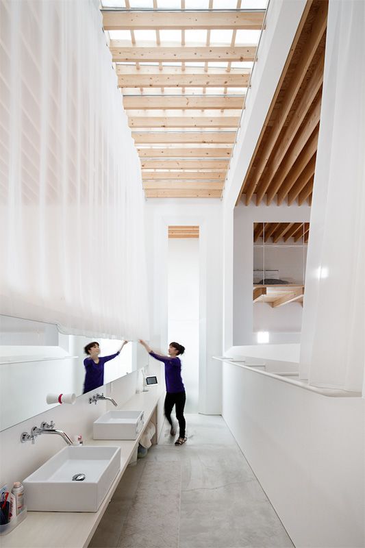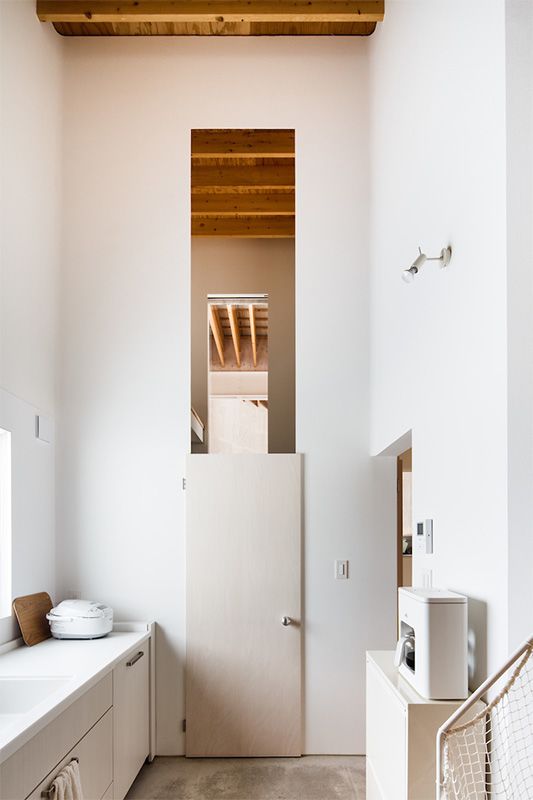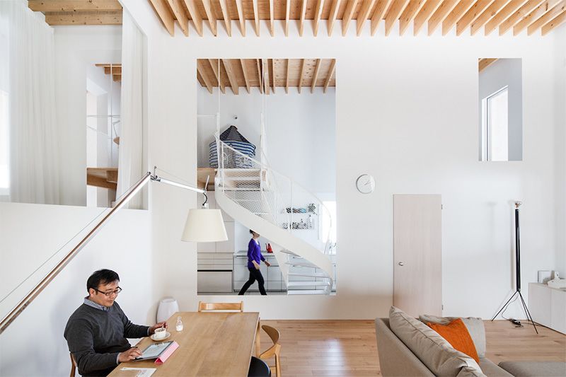 تعيش أسرة مكونة من أربع أفراد في المبنى الفسيح والذي يتناسق بشكل مريح مع تضاريس حقول الأرز والحقول الأخرى. تغطى الجدران الخارجية بألواح الصنوبر الأحمر، المطلية باللون الأبيض. قد يبدو البيت منعزلا عن العالم الخارجي بسبب نوافذها المغلقة. وينبع أغلب الضوء الآتي للداخل من الأثاث الذي يغلب عليه اللون الأبيض. تتصل مناطق المنزل بخفة مما يعطي انطباعا بكون داخل المنزل هو عبارة عن مساحة كبيرة مشتركة لكل الأسرة.