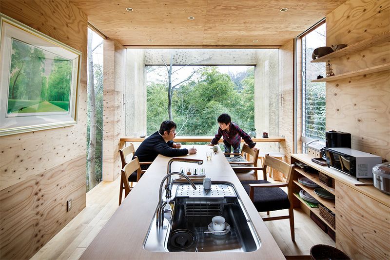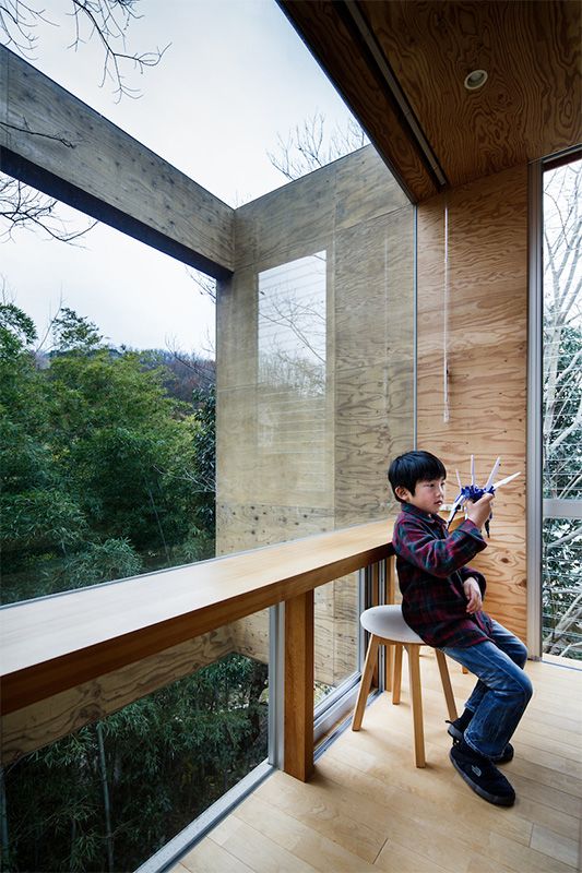 يقع هذا المنزل الذي يقطنه أسرة من ثلاث أفراد، على منحنى تل مغطى بأشجار البامبو في ضواحي فوكاياما، محافظة هيروشيما. وأقام ملاك المنزل سابقاً لفترة طويلة في شقة من عدة غرف ورغبوا في الانتقال لبيت بسيط مكون من غرفة واحدة غير مقسم بالجدران. فرغبوا في جو يشبه منازل الإجازات، حيث يمكون الاستمتاع الكامل بالمحيط الطبيعي.