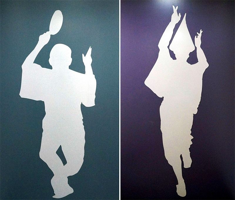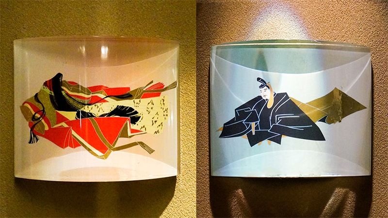 لافتات في مرحاض فندق غاجوئين طوكيو المعروف بحدائقه التقليدية وأجوائه الأنيقة، وغالبًا ما يُقارن بقصر ريوغو – جو وهو القصر الياباني الأسطوري الذي يُعتقد بوجوده تحت البحر. تم اختيار هذه الرسوم التوضيحية نظراً إلى أن استخدام الشخصيات البشرية المبسطة التي ترتدي سراويل وتنانير لن يتماشى مع مثل هذه الأناقة الخالدة.