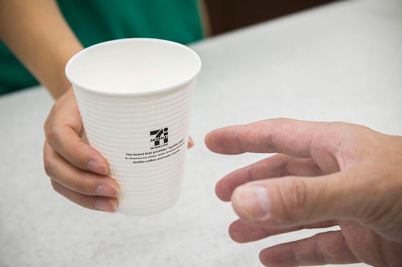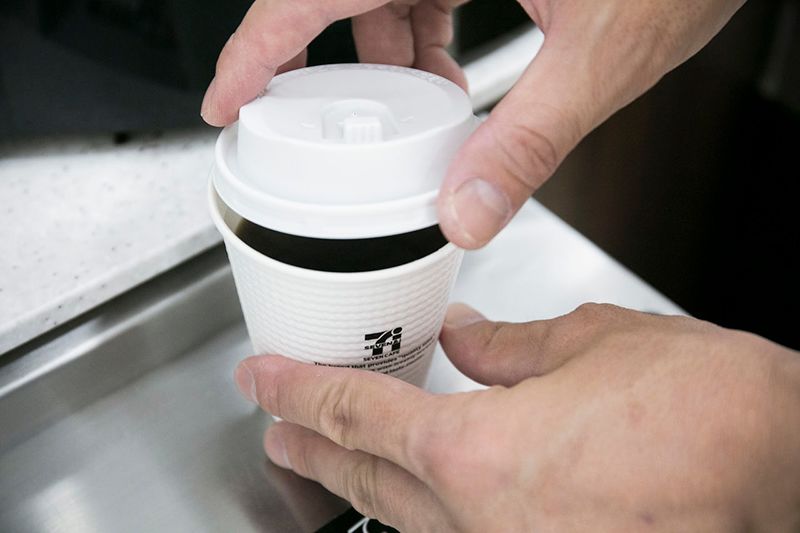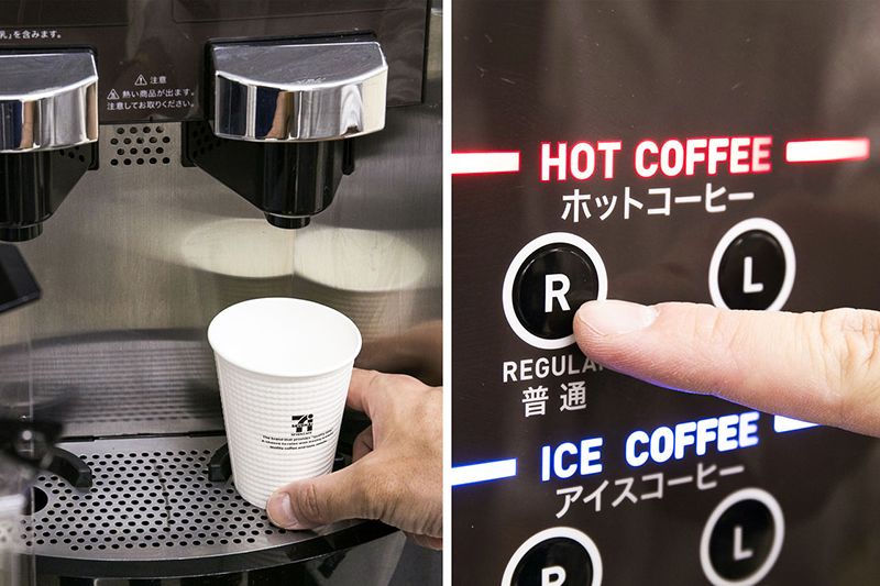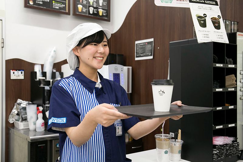 طلب كوب من القهوة، لهو أمر سهل. أولًا يقوم العميل بشراء كوب يحمل علامة تجارية من طاولة الصراف ثم يضعها في ماكينة مخصصة لإعداد القهوة تقوم بتجهيز وصبّ المشروب. في لوسون، يقوم الموظفون بتحضير القهوة من خلف الطاولة كما في المقاهي العادية.