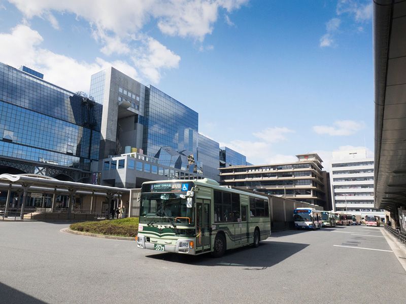توجد محطة حافلات كبيرة على الجانب الشمالي من محطة كيوتو.