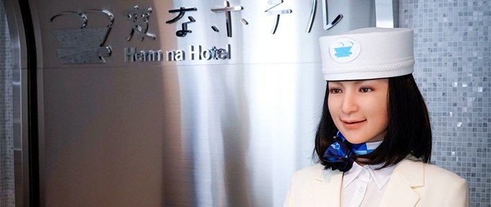 إذا دخلت فندقاً ووجدت فيه موظفات مبتسمات في مكتب الاستقبال، ثم اكتشفت بعد ذلك أن الأمر ليس كما يبدو عليه وأن هؤلاء الموظفات لسن من البشر ولكنهم في حقيقة الأمر عبارة عن روبوتات مصممة بعناية لأدنى التفاصيل. فلا شك أنك تقف الآن عند مدخل فندق هين نا في مدينة هاماماتسو في طوكيو، الذي تم افتتاحه في أبريل/ نيسان عام 2018.