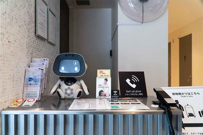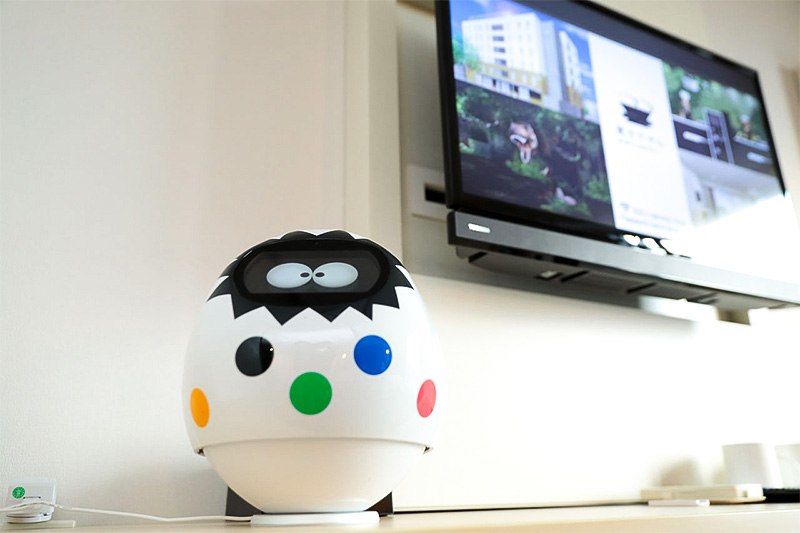 تابيا، وهو روبوت واجهة موجود في كل غرفة ويقوم بتشغيل ميزات مختلفة وفقاً للأمر الصوتي، بما في ذلك التلفزيون ومكيف الهواء والأضواء. (الصورة إهداء من فندق "هين نا" مايهاما طوكيو باي)