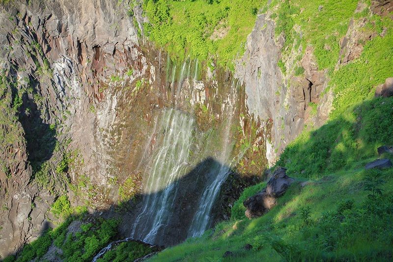 تغذي الشلال مياهٌ جوفية مصدرها الأمطار والثلوج التي تتساقط على سلسلة جبال شيريتوكو وتتسرب إلى باطن الأرض ومن ثم تتسرب من شقوق في المنحدر الذي يبلغ ارتفاعه 100 متر. يحتوي الشلال على هبوط عمودي بارتفاع 60 مترا. ونظرا لقلة حجم المياه المنحدرة من الشلال فقد أطلق السكان المحليون عليه اسم ’’دموع العذراء‘‘.