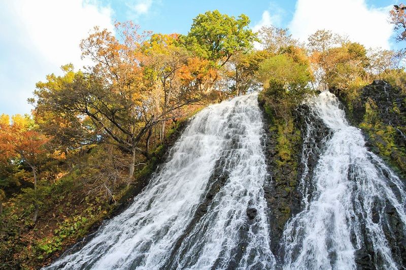يتفرع شلال أوشينكوشين إلى شلالين صغيرين متجاورين. (الصورة مقدمة من جمعية السياحة في شيريتوكو شاريتشو).