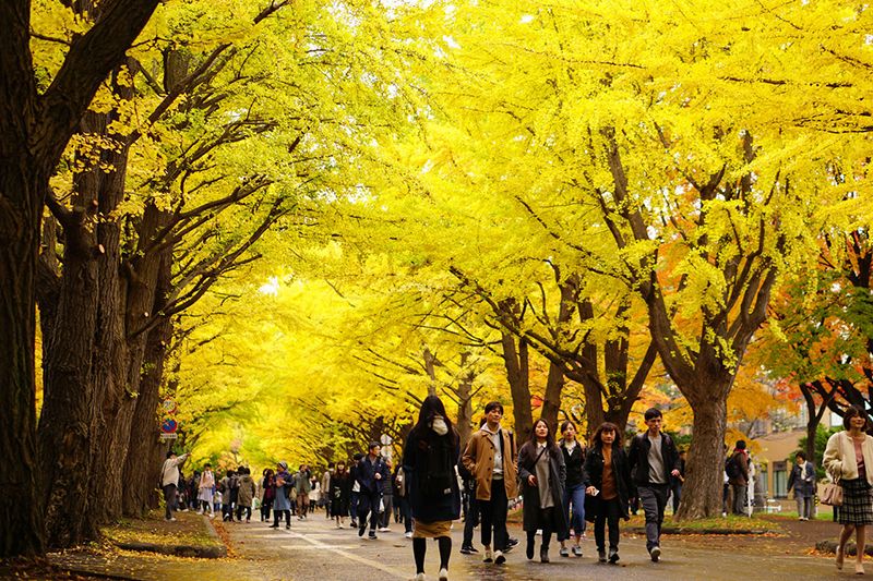 قبة ذهبية من أشجار الجنكة تظلل جامعة هوكايدو
