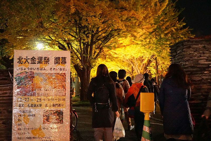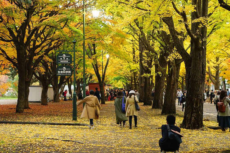 من أواخر أكتوبر/تشرين الأول وحتى بداية نوفمبر/تشرين الثاني، قبل أن يحل شتاء هوكايدو القاسي، يحظى الممشى بين أشجار الجنكة الذي يبدأ من شارع ’’كيتا 13 جو دوري‘‘ بشهرة بين الطلاب والسكان المحليين والسياح على حد سواء لأن هذا المكان هو أحد أفضل الأماكن لمشاهدة أوراق الخريف حتى في سابورو. وخلال الموسم تُنشر يوميا صور جديدة لممشى أشجار الجنكة بأوراقها الذهبية على الموقع الإلكتروني الرسمي للجامعة. على جانبي الطريق الذي يبلغ طوله 380 مترا، تتوزع 70 شجرة جنكة ما يجعل المارة يشعرون وكأنهم يمرون عبر نفق ذهبي.