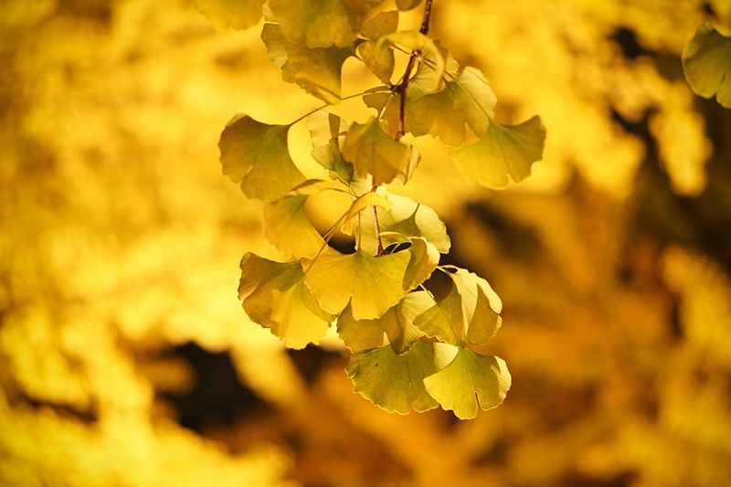 أوراق أشجار الجنكة الذهبية تحول الممشى نفسه إلى لون ذهبي.