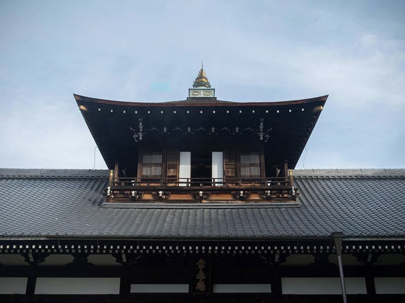 يُستخدم جسر تسوتينكيو للعبور من ’’الهوندو (المنطقة الرئيسية في المعبد)‘‘ إلى ’’جوراكوأن (الجزء الشمالي من المجمع)‘‘. المباني المنتشرة في جوراكوأن تتضمن ’’كايساندو‘‘ وهو مبنى مكرس لإنّي ويحتوي على أيقونة لأول رئيس للمعبد، و ’’كياكودين (قاعة الضيوف/الاستقبال)‘‘، و ’’كوري نو فومونئن (مسكن الكهنة)‘‘. ويتم تقاضي رسوم لقاء المرور عبر جسر تسوتينكيو. ويمنح المنظر من شرفة وسط جسر تسوتينكيو باتجاه جسر غاؤنكيو المرء شعورا بالنظر نحو الأسفل إلى بحر متلاطم الأمواج من أوراق الخريف.
