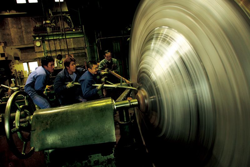 其中的“北岛绞制作所”,在“旋压”这种金属成型工艺上,堪称日本一流。他们擅长于诸如美国的飞机、人造地球卫星的零件、日本H2火箭的顶端部件等没有尖端技术就无法制造的特殊的金属成型,,而且制造这些靠的不是机械设备,而是工匠们的手艺。