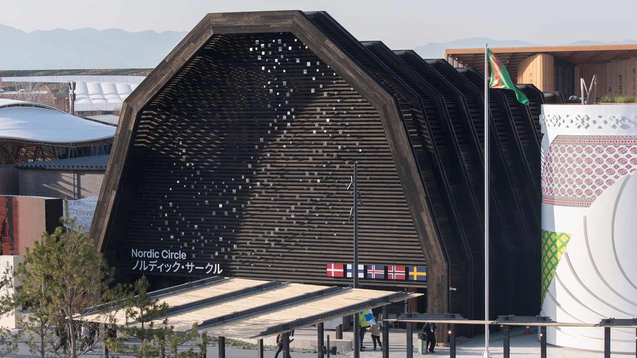 由“北欧五国”冰岛、瑞典、丹麦、挪威和芬兰联合出展的展馆,为木结构三层建筑,面积1200平方米,高17米,设计灵感来自北欧的传统仓库。