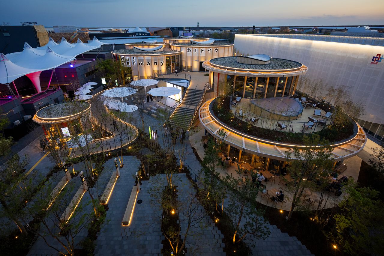 展馆用圆柱状木结构建筑表现“循环经济”的主题。循环的“环”与和谐的“和”在日语中都念“Wa”,展馆名以“Wa!德国”来与之相呼应。