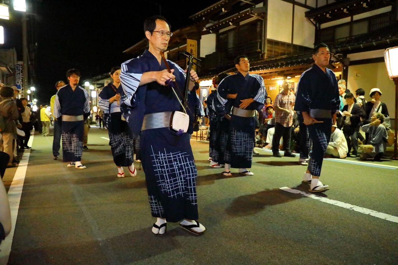舞者后方紧跟着歌手和演奏者,三味线声中,胡琴响起,如歌如泣。乐器高亢的音色,让独具风情的街道和绚丽的舞姿融为一体,美不胜收。