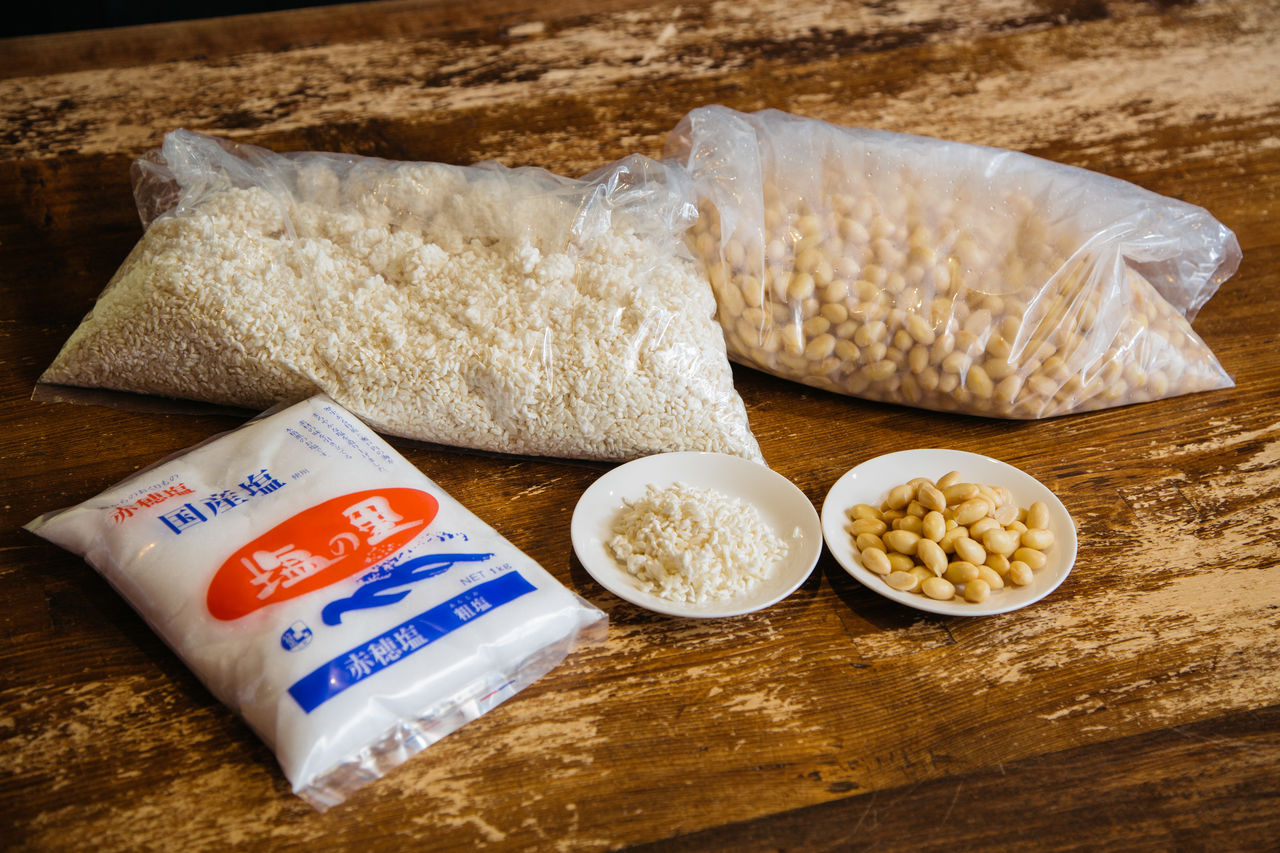 通常的米味噌酱,原料只有大豆、米麹和盐三种。据说堺市传统的味噌酱,大豆和米麹的比例是“2:1”。
