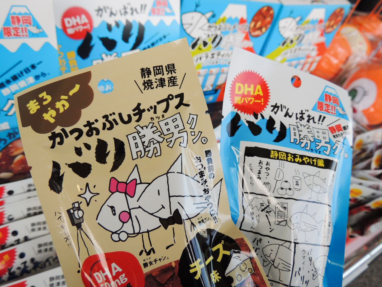 土特产中,“干鲣鱼片脆脆胜男君”在店里销售势头最好。这是一种将干鲣鱼做成小吃风味的简便点心,分为“芥末蛋黄酱口味”“生姜酱油口味”“奶酪口味”等种类。不只鲣鱼,还有用干青花鱼制成的这种脆片。