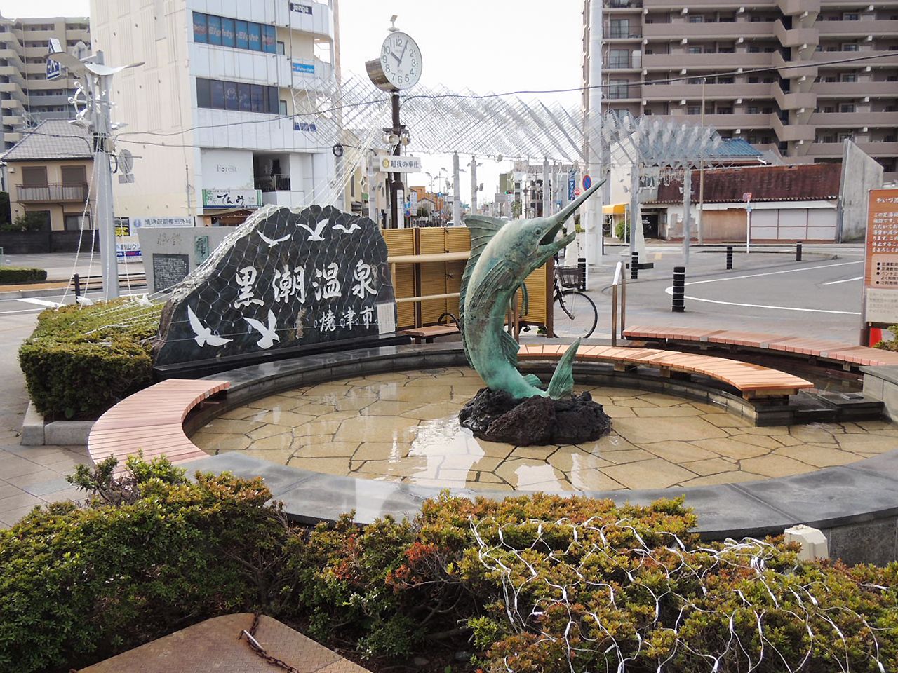 享受美食和购物的乐趣之后,乘坐电车返回的话,可以在烧津车站前的足浴温泉休息一下。这是为宣传市内的天然温泉而设置的场所,当然是免费提供的。