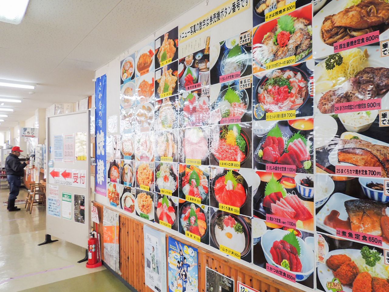 小川港鲜鱼河岸餐厅的菜品真是丰富多彩。除了金枪鱼、鲣鱼、青花鱼,还有用骏河湾的名产樱虾等鱼贝类制作的盖饭和套餐,另外也有拉面和咖喱饭,菜单上的美食图片令人食欲大增。