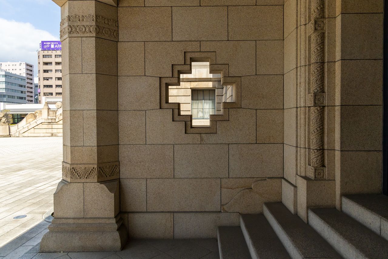 穹顶的装饰非常细致,让人不禁长久凝视。因其是石制的,所以很难被注意到,但窗框是日本寺院的常见形状