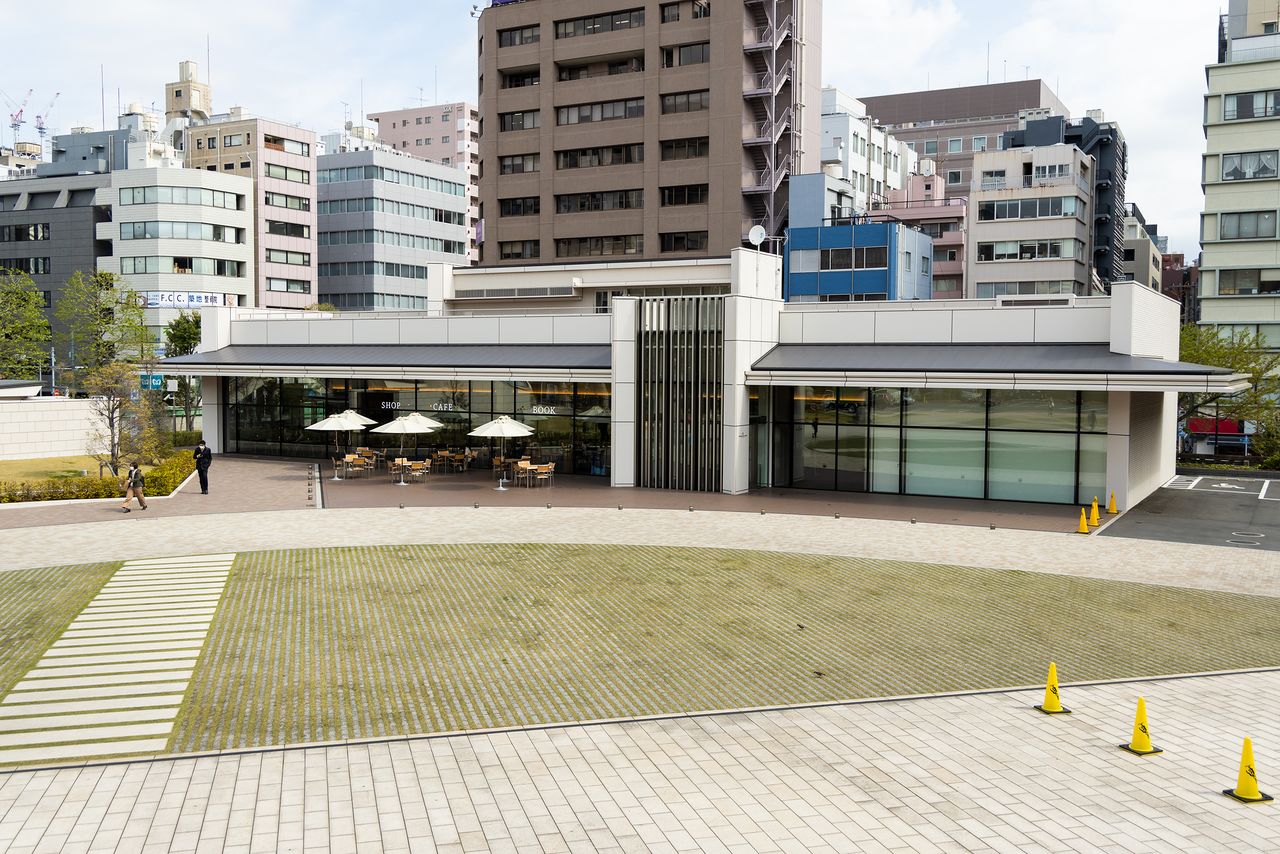 对寺院的场地也进行了翻新,采伐了围墙周围杂乱的树木,并将正殿前的停车场移至广场,形成了一个更加开放的空间。新设了一个供所有宗教和教派使用的联合墓地,带有露台座位的筑地本愿寺咖啡厅Tsumugi,以及一个图书中心。今天,这里已经成为了一个热门景点。附近的商户和孩子们随意穿行、来自筑地场外市场的购物者也在此驻足,很多人在这家以早餐闻名的咖啡厅外排队等候。