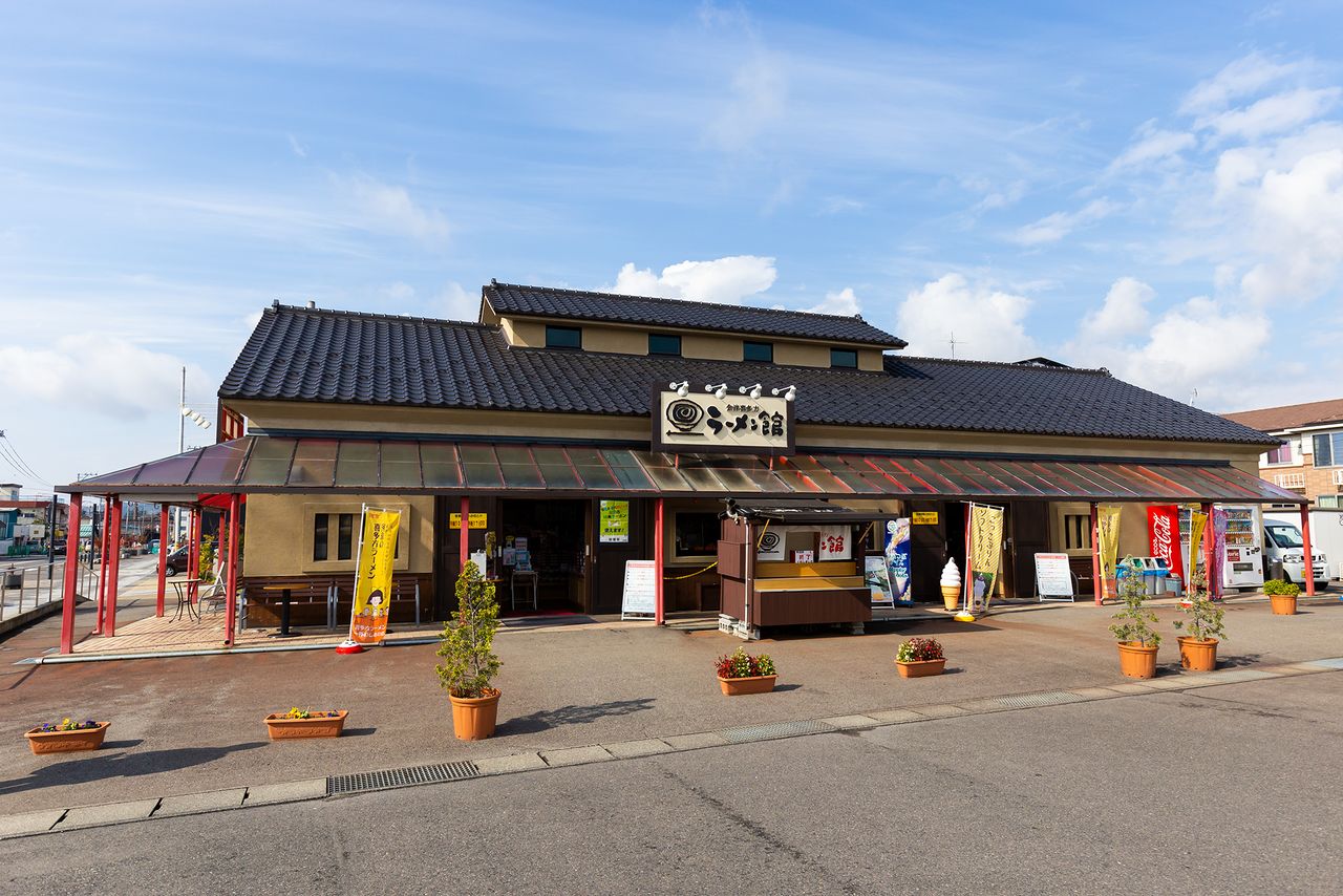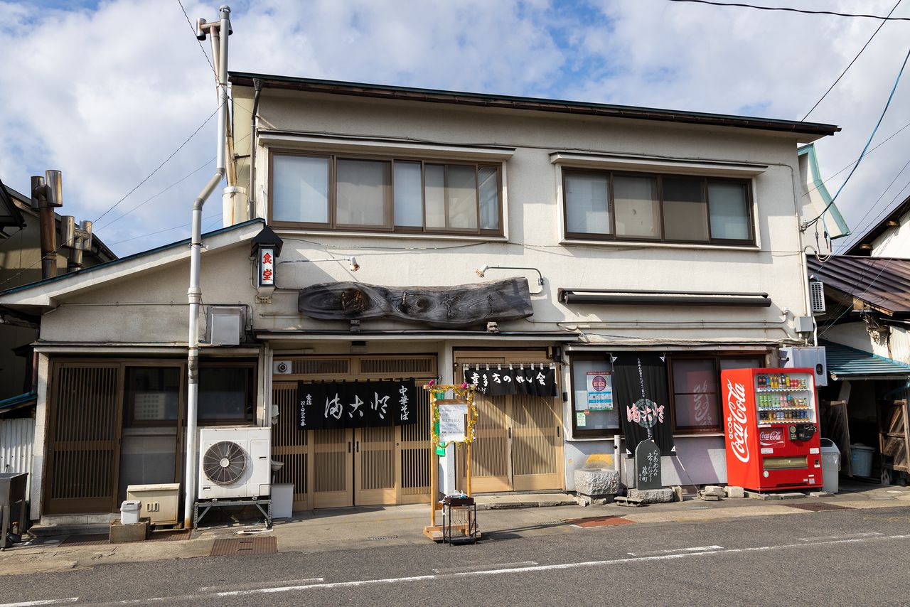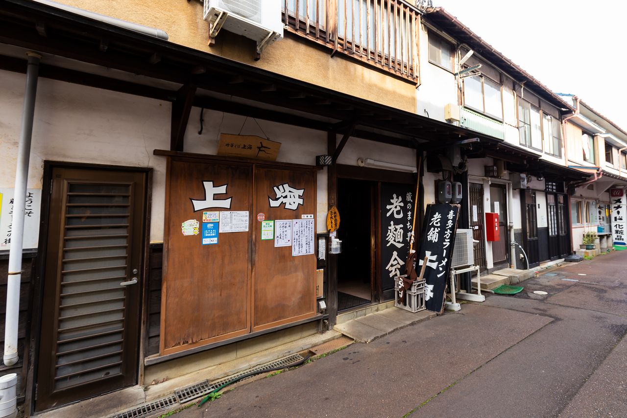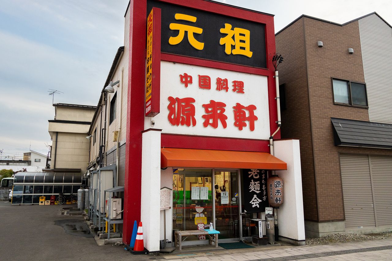 中餐馆源来轩悬挂着“元祖”的招牌,是喜多方拉面的鼻祖店。