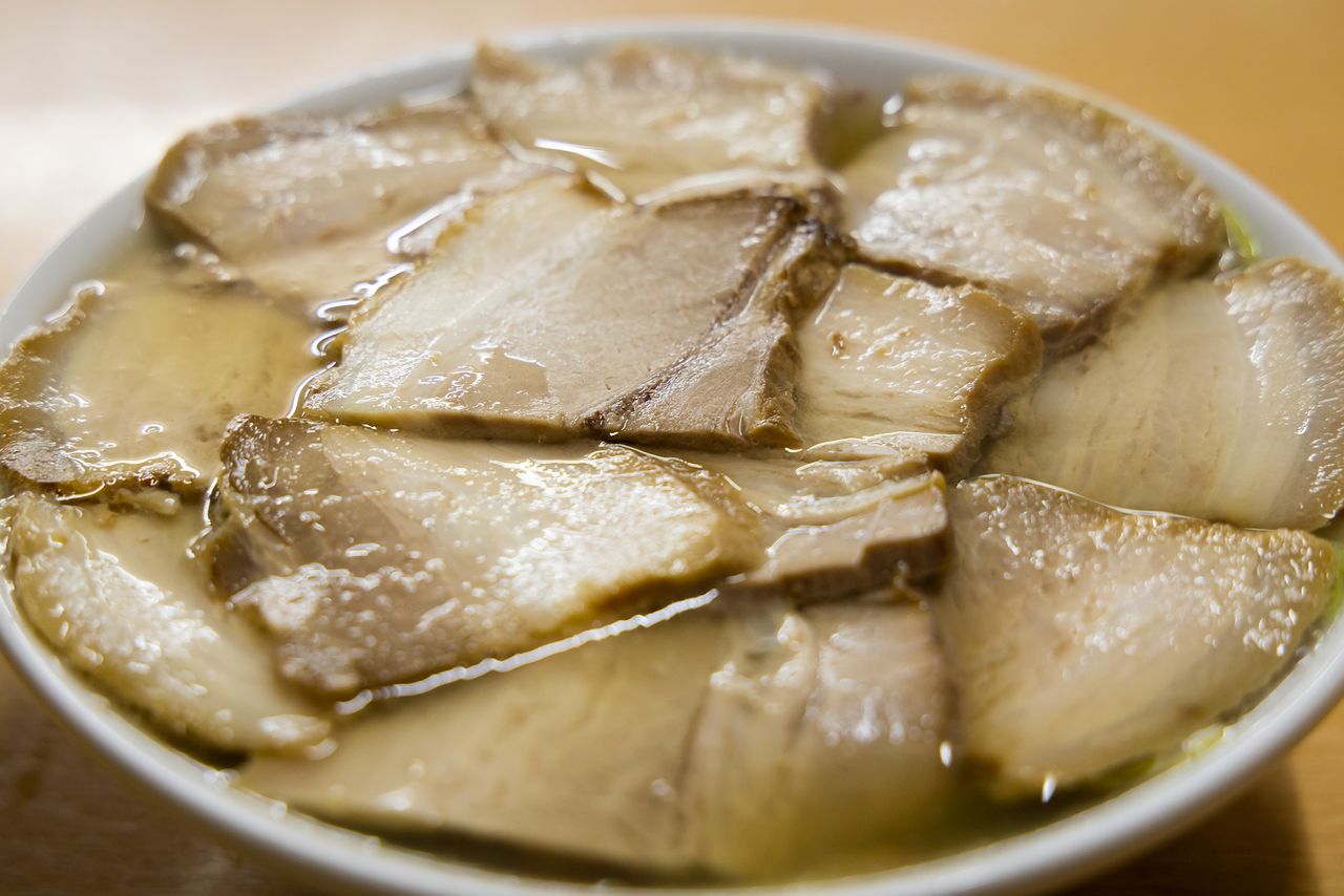 喜多方的拉面店里,要论全国知名度,当数坂内食堂。肉荞麦面是店内的招牌拉面,上面盖着满满一层叉烧肉,甚至连拉面都看不见。