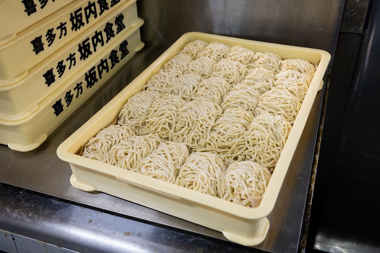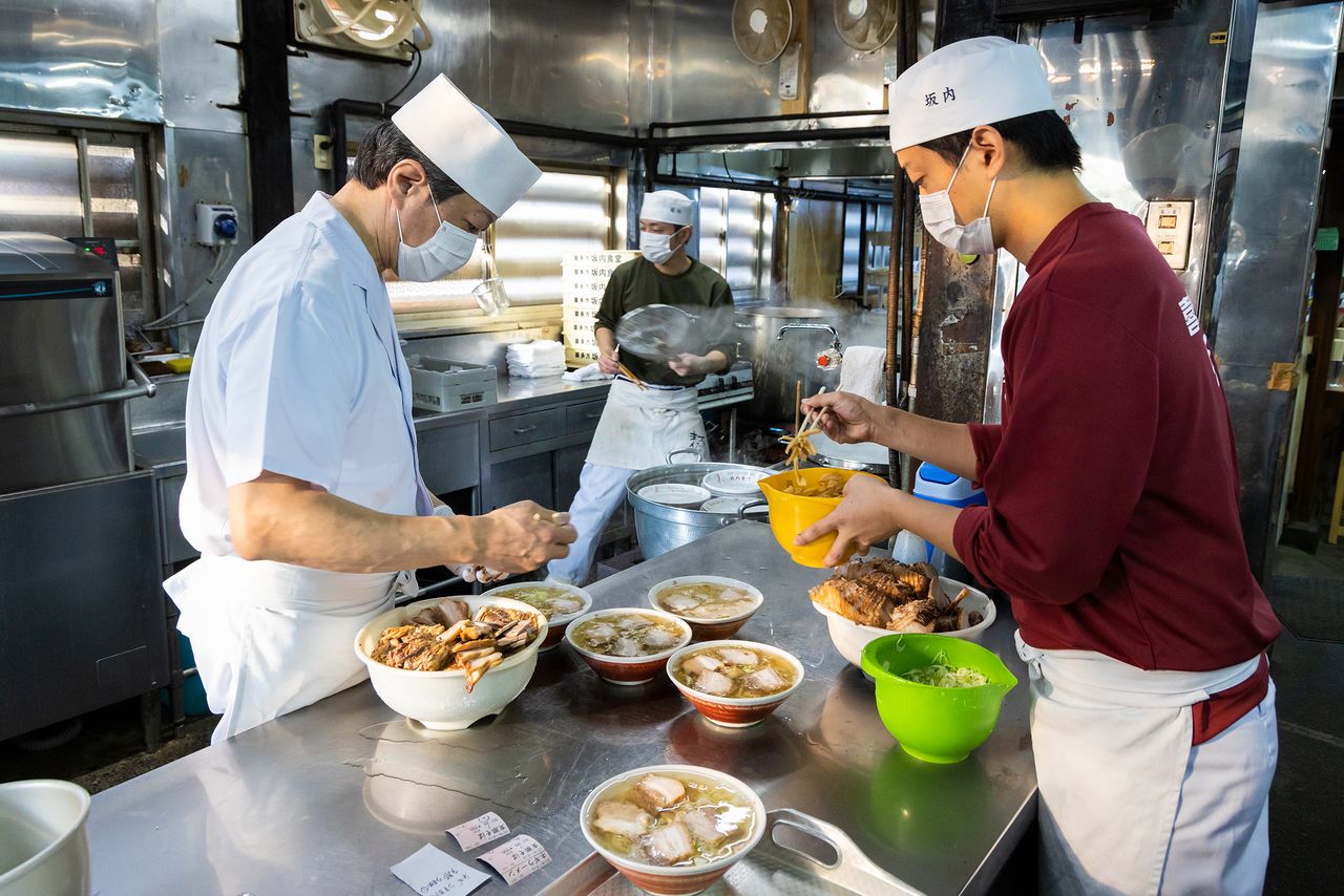 喜多方最有名的拉面店“坂内食堂”的后厨。从早7点起就接单不停