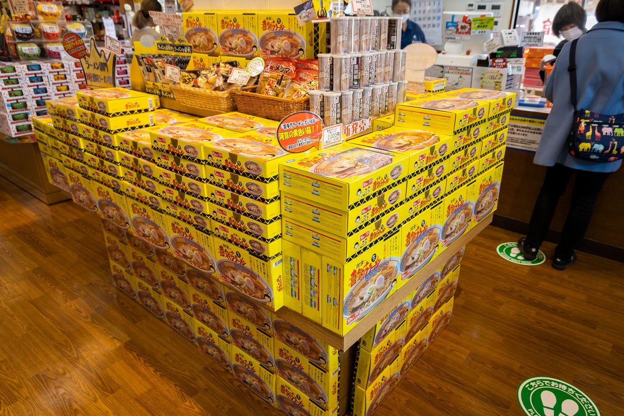 身为扩大喜多方拉面粉丝圈层的“功臣”,是不能忘记带点土特产回去的。其中享有极高人气的是大家熟悉的黄盒子——河京喜多方拉面。