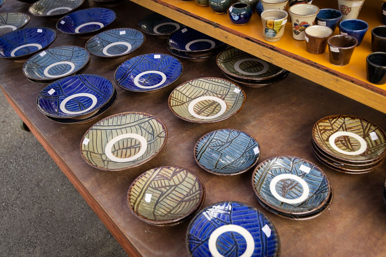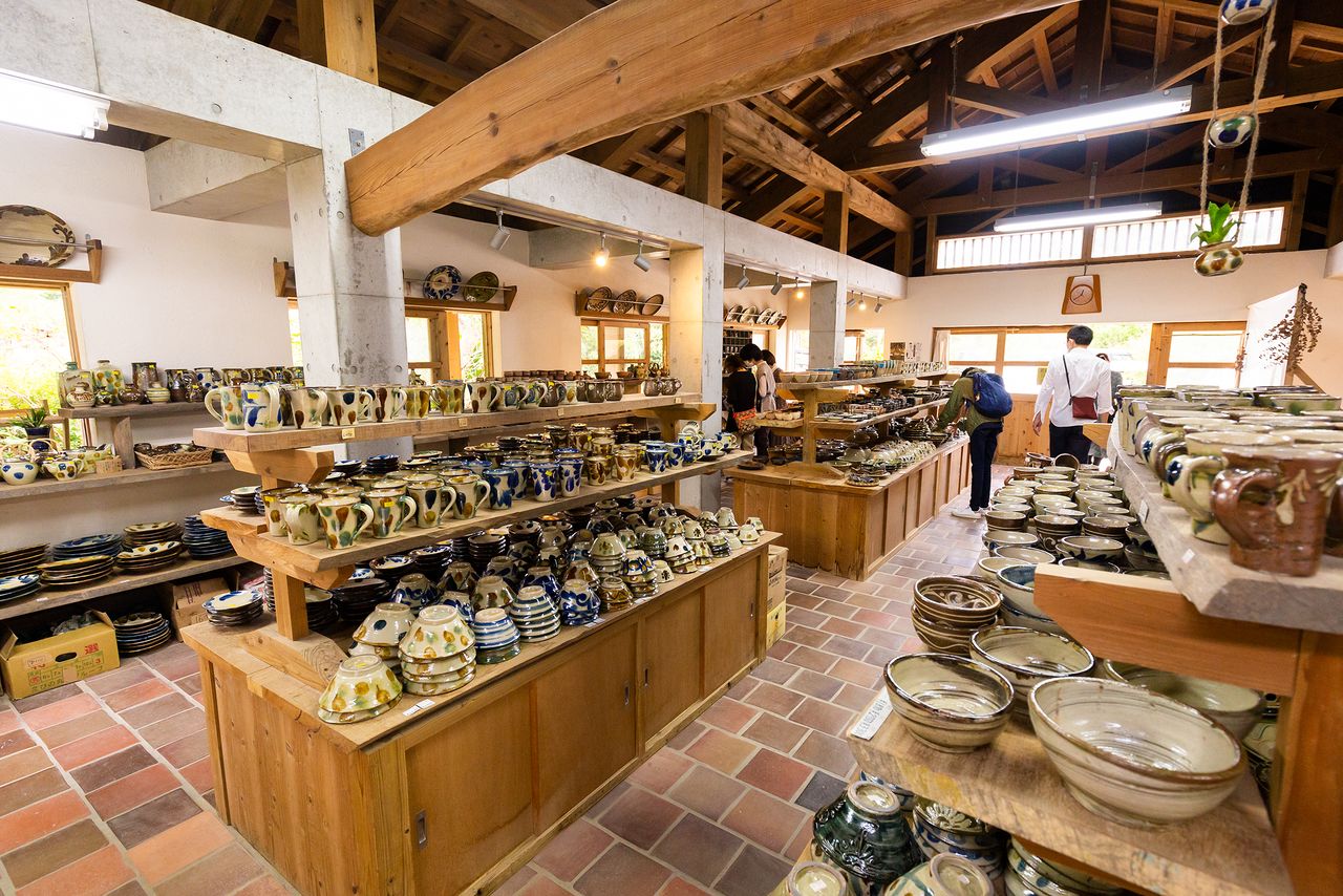 读谷山烧北窑的共营商店环境舒适,风格独特的陶器琳琅满目,令人着迷