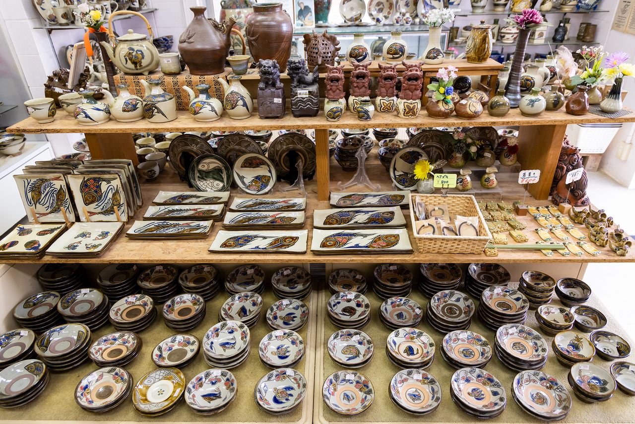 如今,壶屋成为“陶器之乡”,而读谷村被誉为“陶器圣地”。当地烧制的陶器严格采用传统的登窑加热方式,但也有很多作品因其自由和创新的风格而为人称道。到共营商店逛一下,也能看到丰富多彩的陶器,不过还是建议大家去各工坊欣赏陶器作品,在陶器之乡悠闲漫步。