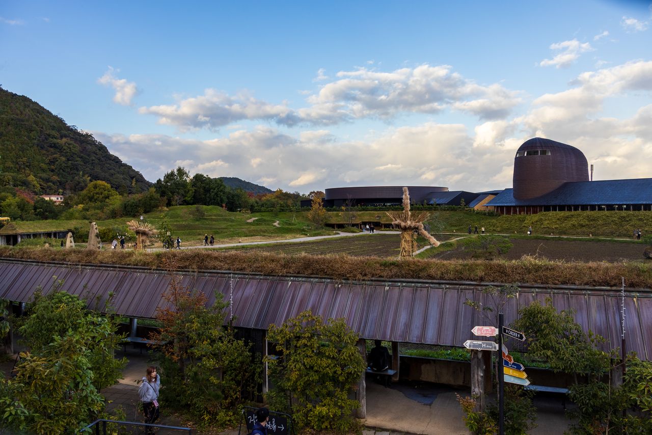 穿过主店铺,映入眼帘的是一片以水田为中心的覆草建筑和梯田。以年轮蛋糕为灵感设计的圆柱形厂房,带有圆润铜顶的总部大楼,带有小门小窗的土塔,等等,独具特色的建筑格外引人注目。这童话般的景致被形容为“宛如吉卜力的世界”,在社交媒体上引发热议。