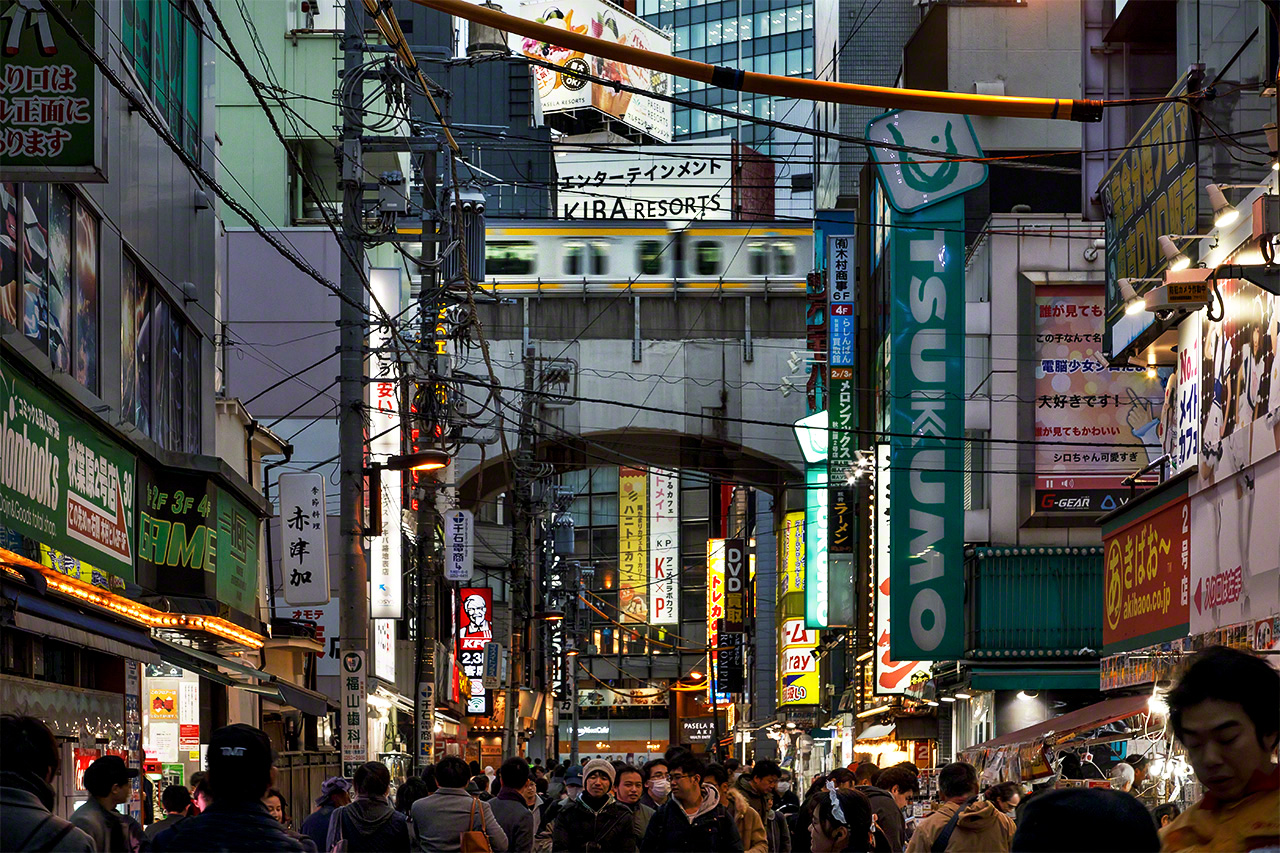 东京的街道,与那些优美的木结构房屋、面露微笑的和服美女等固有的老套印象相去甚远。那里是杂乱的混凝土形成的森林,钢筋水泥的楼群一望无际,电线杆上无数条电线杂乱交错,密密麻麻遮天蔽日,给人感觉这里是个没有秩序的混乱空间。