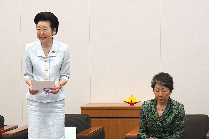 “2014年5月,我就任社团法人亲子健康手册普及协会顾问,在同是顾问的高村治子(自民党副总裁夫人)夫人的协助下,致力于母子手册的推广工作。事实上,居住在波士顿的孕产妇们曾经向我们协会咨询,表达了‘无论如何在国外也想使用母子手册’的愿望。自那以后,我们就决定向居住在海外的日本孕产妇们也免费发放母子手册。”