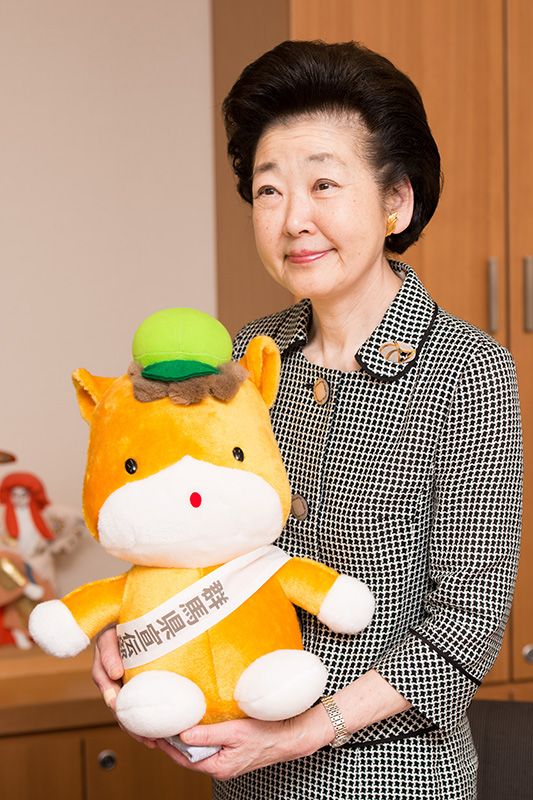 群马县的吉祥物“群马宝贝”和福田贵代子女士。“群马宝贝”是群马县的官方“宣传部长”,担当着增进国内外友好关系的重任