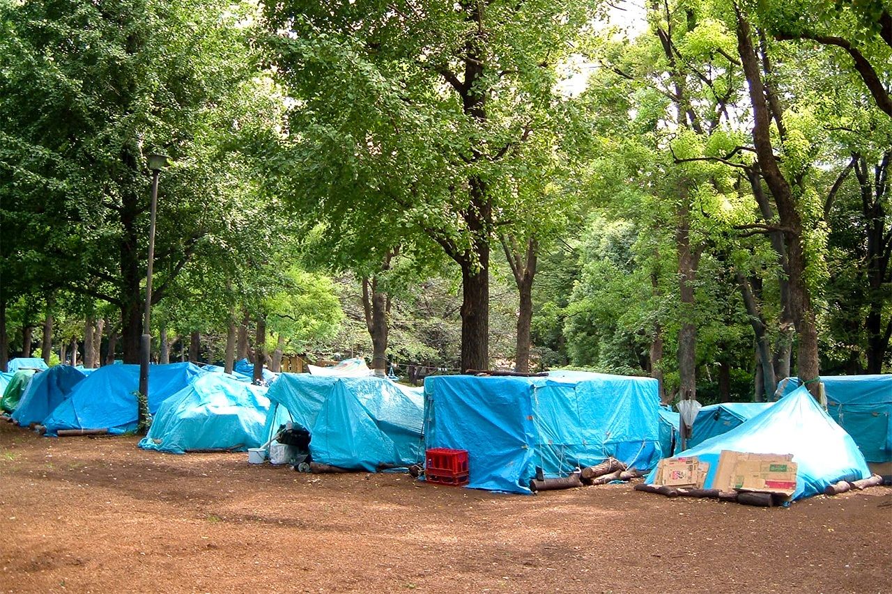 2002年,国家出台了最早的露宿者政策《流浪者自立支援等相关的特别措施法》(流浪者自立支援法),规定应给露宿者提供雇佣机会、职业培训、住宿场所等。最初只是为期10年的暂行法,但2012年延长了5年,2017年又延长了10年。2015年,《生活穷困者自立支援法》实施。这部法律是对既往支援政策的扩充,将有陷入露宿生活风险的人群也纳入了救助范围。