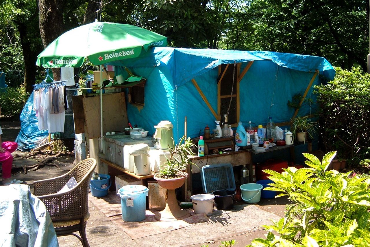 “近年来,在公园和河岸地搭帐篷越来越难,因此没有帐篷的露宿者的比例越来越高。跟能够搭帐篷的时代相比,生活更是雪上加霜。我自己体验过一周的帐篷生活,当时有卡式炉可以做饭,还有放行李的地方,算是很难得的了。生理期用品之类的生活必需品都是志愿者帮助采购的。现在这种形式的露宿生活已经不太可能了。”