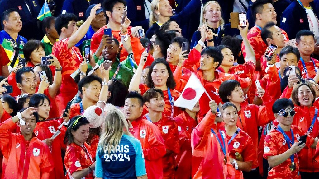 标题图片:北口榛花(中)等日本选手在巴黎奥运会闭幕式上(共同社)