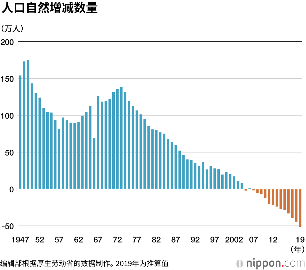 2019年,日本国内出生的日本新生儿为86.4万人,厚生劳动省依据人口动态调查初步统计值推算,预计全年新生儿人数将跌破90万,这是1899年该统计实施以来的第一次。自2016年以来,新生儿人数连续三年低于百万,2018年为91.84万。
