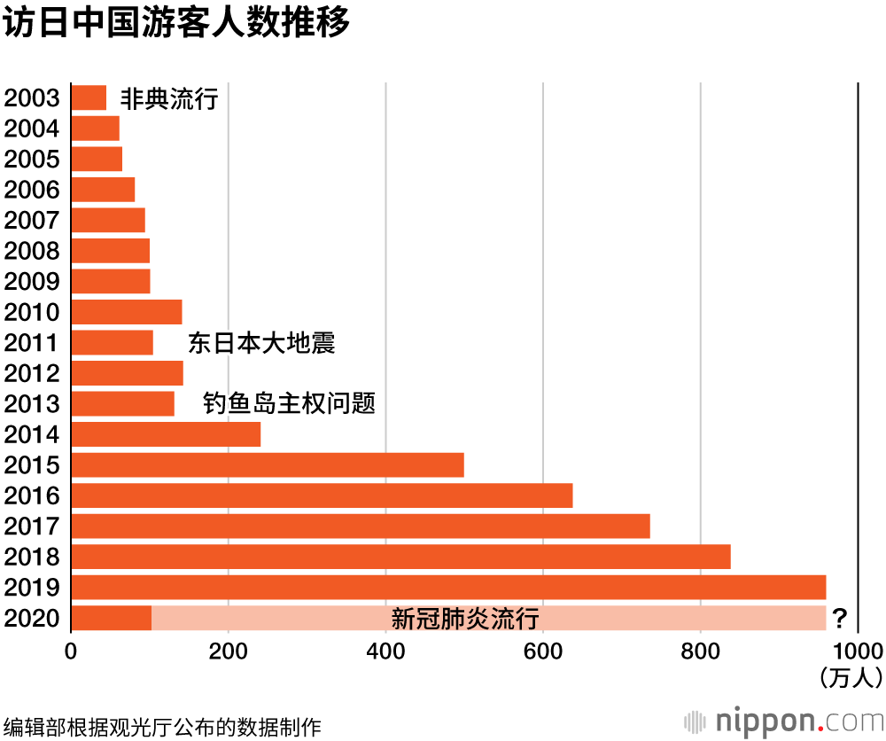 2019年的访日游客人数刷新历史记录,达到的3188万人。日本政府提出2020年访日游客人数突破4000万的目标。然而,仅仅在不到半年的时间里,新冠肺炎就致使一步一个脚印积累起来的入境游市场荡然无存。