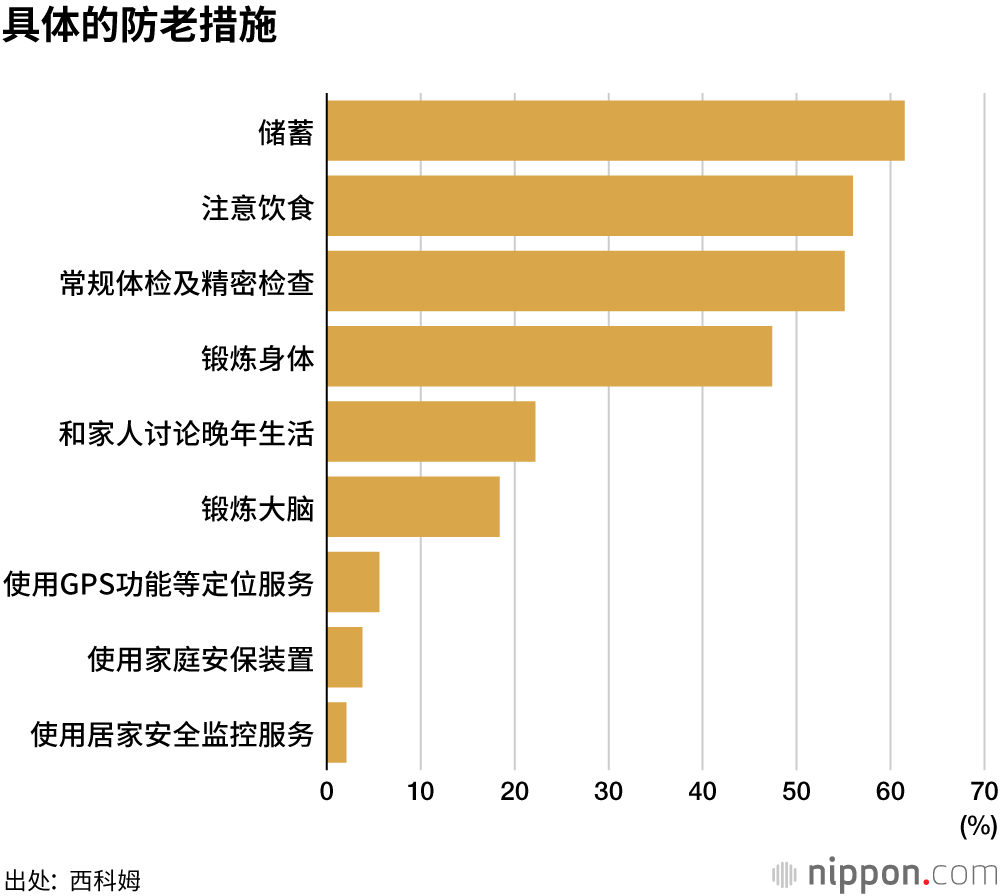 安保服务公司西科姆(SECOM)对500名20岁以上民众实施的调查显示,多达83.8%的受访者表示“对晚年生活感到担心”,尤其是50到59岁年龄段的女性受访者,占比达到90%。