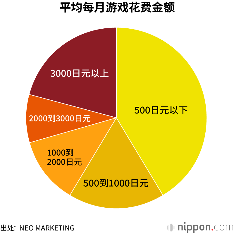 平均每月游戏花费不到500日元(近半年平均)的受访者最多(41.5%),3000日元以下的受访者占比合计达到80%。