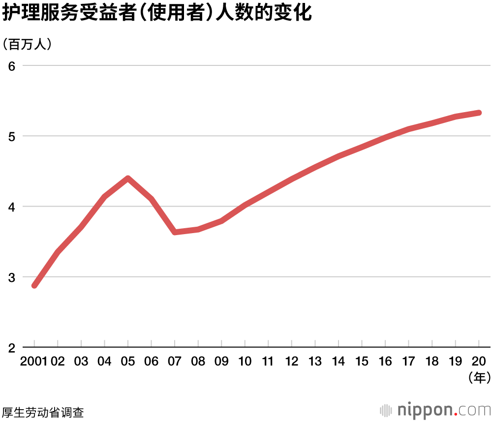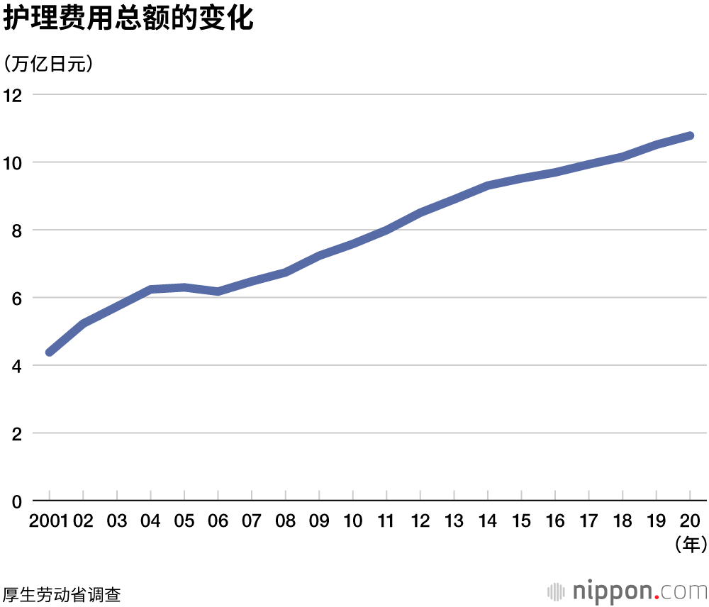 此项调查始于推出护理保险制度的第二年,也就是2001年度,费用总额在这20年间翻了一倍以上。