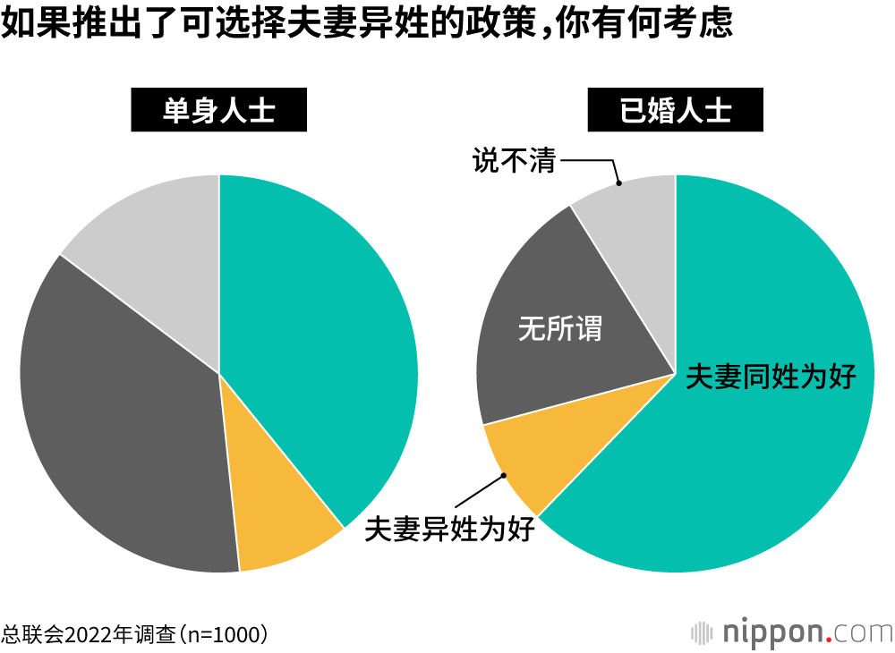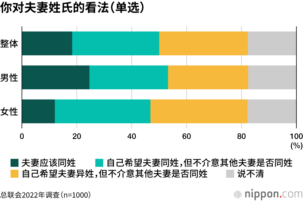 64.0%的日本受访者不介意夫妻是否同姓