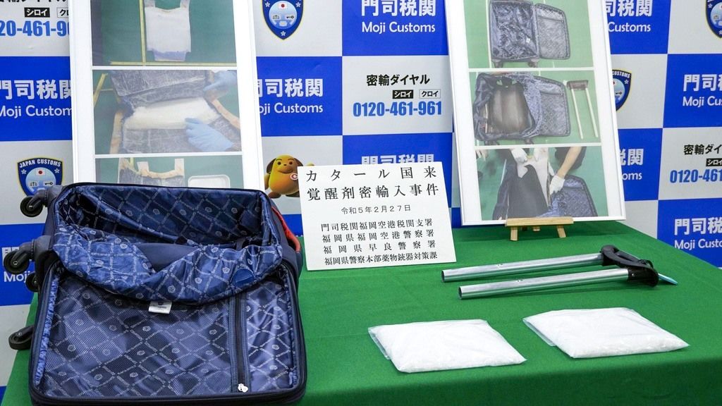 标题图片:福冈县警方收缴的兴奋剂,2023年2月27日,福冈机场海关分署(共同社)